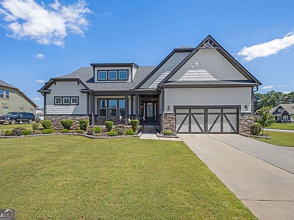 Welcome home! This stunning, nearly new Craftsman-style residence elegantly blends modern design and effortless comfort. Entering through a spacious foyer, you're greeted by a dramatic two-story stone fireplace anchoring the grand living area, an ideal setting for both cozy evenings and gatherings. Soaring ceilings and towering eight-foot doors throughout the main level enhance the home's airy, open feel. The chef's kitchen offers plenty of space featuring Kitchen-Aid appliances, 42" shaker-style soft-close cabinetry and a walk-in pantry. The main-level owner's suite is a true sanctuary, distinguished by a coffered ceiling, sitting area, and a luxurious ensuite featuring an oversized primary closet, separate soaking tub, a generously proportioned shower, and direct access to a screened porch, perfect for peaceful mornings or quiet evenings. Upstairs, a versatile flex space offers endless possibilities as a media room, or play room accompanied by two spacious bedrooms, one with its own ensuite and another full bath and bonus room that adds even more flexibility such as an office or crafting space. The lower level beckons with a thoughtfully designed in-law suite, complete with two bedrooms, a kitchenette, a full bathroom, and an open living area. With approximately 1,000 square feet of unfinished space, the basement offers immense potential for expansion, whether for a home theater, fitness center, or creative workspace. Set on over half an acre, the fully fenced backyard is an ideal retreat for outdoor entertaining or simply enjoying quiet time among privacy and greenery. It is conveniently located near shopping, schools, restaurants, and entertainment. Happy Showing!