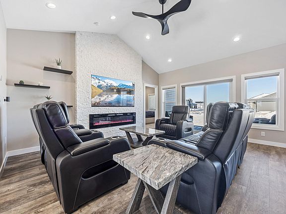 Located on the golf course path for Maple River Golf, welcome to 100 Annies Way in the desirable Ashmoor Glen neighborhood of Mapleton! This beautiful one-level home offers 4 bedrooms and 4 baths, designed for effortless living and modern comfort. The open-concept layout centers around a beautiful kitchen featuring a gas range and sleek finishes, perfect for cooking and entertaining. The living room showcases a striking stone feature wall with a cozy fireplace, creating a warm and inviting space. The primary suite includes a spa-like walk-in shower, while each additional bedroom offers its own full bathroom for ultimate privacy and convenience. Enjoy the immaculate landscaped yard with maintenance-free rubber mulch, stone edging, and a large concrete patio ideal for entertaining and sunset evenings. Situated on a spacious corner lot, this home blends small-town charm with modern design, just minutes from Fargo amenities. Trampoline and playhouse included!