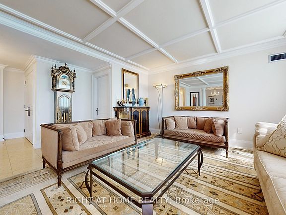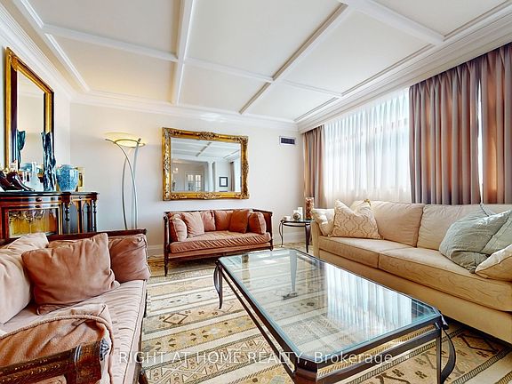 One of the Largest and Most Beautifully Renovated Suites in the Building. Welcome to this exquisitely updated 2-bedroom plus den/office, 2-bathroom suite offering approximately 2,000 sq. ft. of bright, elegant living space with unobstructed corner unit south-facing views a true bungalow in the sky on the sub-penthouse 28th floor. The grand foyer with a double-door closet leads into spacious living and dining areas, perfect for entertaining or relaxing. Large windows fill the space with natural light and frame stunning east, south and west views. Featuring waffle ceilings and gypsum crown moulding, Jerusalem stone flooring, custom solid wood doors, and rich draperies throughout, this home radiates warmth and elegant sophistication. A full-sized dining room with custom built-in cabinetry connecting to a sun-filled quartz solarium, ideal for lounging or working from home. The gourmet kitchen is beautifully designed with granite countertops and backsplash, under-cabinet lighting, extensive custom cabinetry, large floor to ceiling window, and high-end built-in appliances including a paneled double-door fridge, cooktop, microwave/oven combo, and paneled dishwasher. The spacious primary suite offers a reading nook, desk area, generous cabinetry, a large custom walk-in closet, and a luxurious ensuite with Perrin & Howe Mayfair hardware, custom slab travertine heated floor to ceiling finishes, double-sinks, travertine vanity and shelving, steam sauna shower, with a connecting private toilet and bidet. The second bedroom includes a double closet and is perfect for guests or family. An in-suite locker with built-in shelving adds valuable storage space. Located steps from transit, top schools, parks, and shops, this home offers ultimate convenience. Maintenance fees include all utilities, including Rogers cable TV. Two parking spaces are included.