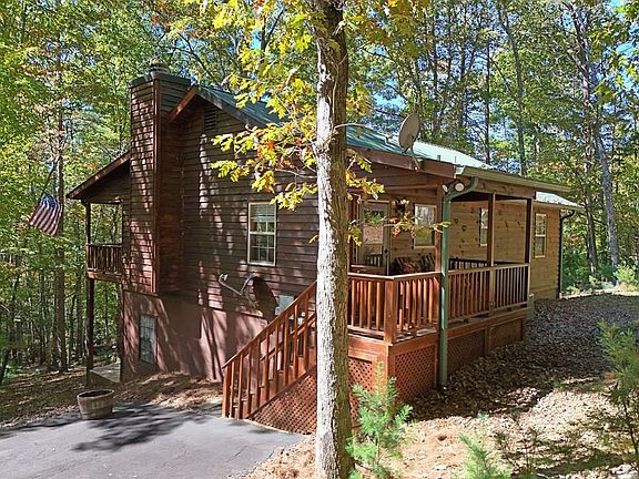 OH WHAT A PACKAGE!!!! WOOD INTERIOR! T&G , 3BR/2BA PLUS bonus game room and DEN in the lower level. Main floor features Great room w/ Vaulted ceiling & wood burning fplc w/ rock face to ceiling. Open Kitchen w/ breakfast nook. Primary bedroom plus guest room. Wrap around porch/deck to full length covered Porch along the front. Lower level has poured Concrete Patio under the upper porch. Central Gas furnace heat and central electric Air. Paved Driveway. DETACHED 24x24 garage!!! FURNISHED!!! SO NICE!!!. Excellent location close to the NC Line, easy access to Lake Nottely, and approx 11 miles to Blairsville. STRs allowed. Additional 4 adjoining acres can be purchased as well. By appointment only