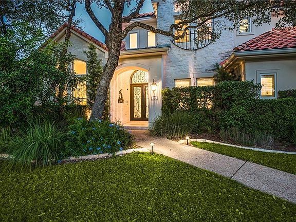 Custom Mediterranean estate home on beautiful, 1-acre, wooded, corner cul-de-sac Lot in a private gated retreat on the south shore of Lake Travis! Owners enjoy access to the private Arbolago 19-acre waterfront park with hike/bike trails, 3 day-docks, boat ramp, sport courts & upper deck for lakeside dining! Gourmet granite island kitchen with professional Thermador cook-top, stainless appliances, warming drawer along with a wet bar and wine room (stained glass door)! Home features true Media Room, Game Room, 4th BD (OR Study-down), Storage Room, In-ground safe, 3 outdoor entertaining areas with stone fire pit, including upper covered balcony with porch swing * Private back Yard partially enclosed with Wrought-Iron fence & 4 gates (perfect space for a pool!) * 14-zone Irrigation System * Surround speakers In & Out * Oversized 4 car side-entry garage with built-in storage & newly painted/ epoxy floors * Marble, Travertine & hardwood flooring with recent carpet in BD's *