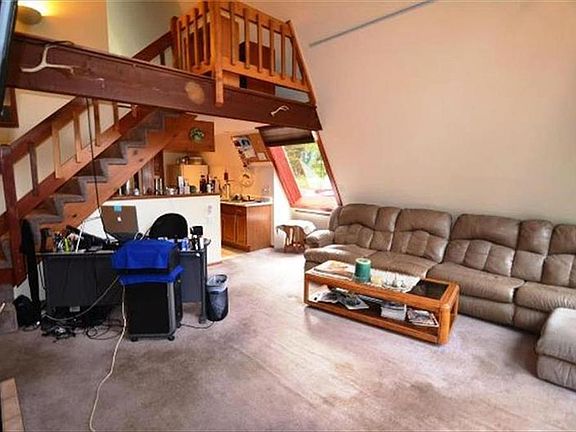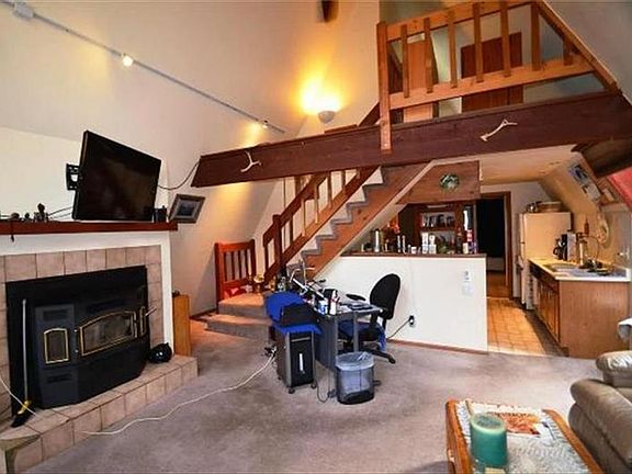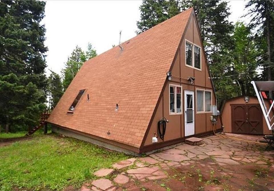Well-built with a solid foundation on a flat usable pine and aspen covered lot. The high vaulted design creates a nice sense of space, from the kitchen to the living room with an open staircase leading to a large loft bedroom. Forced air heat is fine but the entire home can be keep comfortably warm with the Quadra-fire pellet stove. A great get away location, far enough for privacy but only 20 minutes to conveniences. A good producing well with a Rain Soft water treatment, updated Norweco septic system and a 500 gallon propane tank. The property has been well maintained with some added features like a newer electrical panel wired for a generator, added recess lights and digital thermostats. A private driveway for cars and an RV or camper. A roomy shed and large crawl space is perfect for storage. County maintained roads.