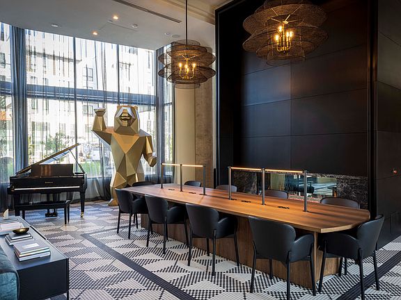 - Exterior features: Appliances Stainless, Barbecue, Business Center, Cable included in rent, Closet Walk-in, Common Area Wifi, Cyber Cafe, Dog Washing Area, Green Space, On-Site Maintenance, Online Rent Payment, Onsite Security After Hours, Paid Utilities (specify which utilities), Quartz Counter Tops, Resident Experience Services, Roof Top Lounges, Secure Parking, Smart Building Access Enabled