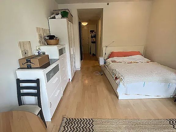 This large Studio has a unique interior design, hand-laid maple floors; granite counters, spacious kitchen; double insulated windows; California style closets; crisp white baths with subway tiles, and Kohler fixtures; and individual climate-controlled PTAC AC unit.