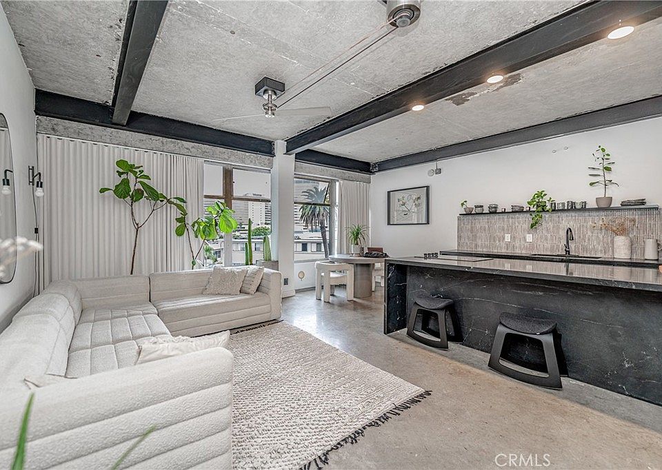 Welcome to this 1 bed 1 bath condo located in the Arts District in Long Beach. Located just two blocks from the beach, you can enjoy a morning coffee on the water or go for a sunset run along the bluffs. Inspired by minimalist brutalist design, this condo has concrete floors and ceilings, with gigantic windows that look over downtown. Many of the features in the condo are custom made, such as the velvet white curtains that run floor to ceiling and the sliding glass closet doors in the bedroom. The kitchen has also been completely remodeled with new granite countertops, a new stove, new oven, new sink, and new dishwasher. In the bathroom the renovations continue with a new vanity and new shower door. This condo defines the phrase “move in ready”! The condo is fantastic for its’ location next door to a grocery store and within walking distance of many fantastic bars and restaurants such as the newly opened, Olive and Rose. Its’ unique style is the reason for this condo’s appeal. You will fall in love with it as its’ current owner has!