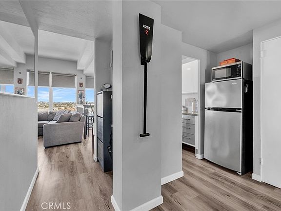 Experience the epitome of beach and urban living with this coveted 9th-floor CITY LIGHTS VIEW residence at the iconic Royal Palms! Nearly 500 sq ft of remodeled space which includes vinyl flooring & smart recessed lighting. This studio unit has been modified to include a separate bedroom space opening to the living room with double French doors. From the living room, enjoy mountain and city light views! The adjoining remodeled chic kitchen features quartz counters, contemporary footed cabinetry, stainless appliances, recessed lights, fridge and stainless drawers & shelving! Upgraded cabinetry in bath along with wand shower head and upgraded fixtures. Built-ins added inside the mirrored closet, plus extra storage in garage area. Royal Palms is a pet-friendly building; and your HOA includes hot & cold water, trash (and trash chute), heat, Amazon drop station, community pool, meeting room, security patrol and on-site management - plus coming-soon rooftop entertainment! You are in the heart of fabulous Restaurants, Shops, Art Galleries, the Performing Arts Center, the Metro, Shoreline Village - AND a hop and skip from the beach! Enjoy the monthly street fairs, art walks, annual Grand Prix and much more!