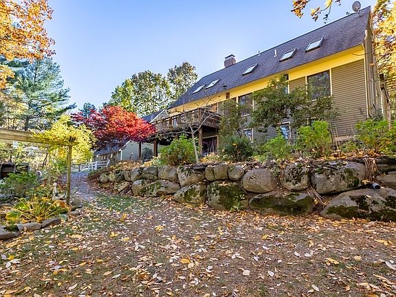 Updated Contemporary Cape on cul-de-sac! Private 2.68acre setting abuts 283 acres of Patch Hill conservation. Gorgeous landscape with gravel driveway & walkways, pergolas & sitting areas, fieldstone accents, gardens & fruit trees. Urban country chic interior with artistic industrial handmade touches. Custom kitchen w concrete counters & gas stove. Cozy Dining Room. Vaulted Living Room has walls of glass & woodstove. Laundry Rm w sink, 2 BR's & Bath on main level. 2nd floor consists of Primary BR, Bath w 2 sinks & fab walk-in shower & Office/Nursery. Family Rm, BR& BA in walk-out lower level. A covered walkway connects the home to the 2C Garage. Property is set up for Equestrian use: 2 Stall Stable (under the garage) w water & electricity, electric fencing, riding pen & shelter. For non-equestrians, all can be easily disassembled. UPDATES in past 11 yrs: Windows & Sliders, 4 Mini Splits, Boiler (2020), Chimney Liner &Cap, Kitchen/Baths. Underground Utilities. Train nrby. Top Schools!