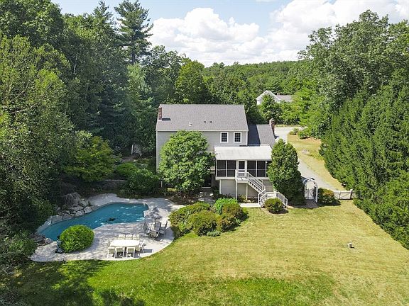 Nestled on Ayer Road, this single-family residence offers an opportunity to embrace the serenity of New England living. The large 1st floor foyer opens to dining & living rooms, w/ adjacent kitchen featuring large island, ss steel appliances, a half bath & 1st flr laundry! The fireplaced family room connects to an expansive screened porch with views of the pool area and yard. 2nd floor includes 4 sizable bedrooms & a master BR full bath & walk-in closet. The finished basement is perfect for an office, gym or playroom, has a 4th bathroom and walkout access to the patio and pool area. Mature plantings & stone landscaping surround the Gunite pool complete with waterfalls. Updates KitchenAid Downdraft Range 2025. Water Filtration Sys 2025, Refinished Hardwood Floors 2025, Oil Tank 2024, Trex Decking 2020, Roof 2019, Anderson Doors/Windows 2017, Buderus Furnace 2015, Hot water htr 2015, Gunite Pool & Patio 2005. Don't miss the chance to bask in the tranquility of this special community!