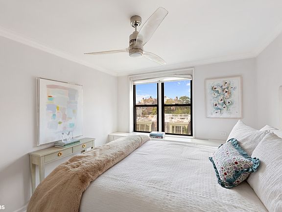 Bedroom has custom built-insSunny top floorTcs walk-in closetTwo closetsOlympian white marbleDouble layer of blindsWindowed bath