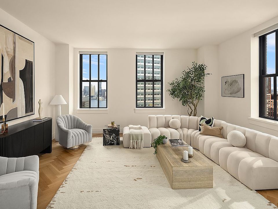 Triple Mint, Newly Renovated, and Just Listed, Residence B22 is a rare opportunity to own one of the most coveted 4-bed, 4-bath lofts at the iconic One Hundred Barclay. Spanning 2,870 sqft, this sun-drenched home offers soaring 10-ft ceilings, oversized 7-ft casement windows, and 4-in wide-plank white oak floors. Airy and expansive, the residence is framed by panoramic northwest views that capture the majesty of the Manhattan skyline and the shimmering Hudson River beyond.