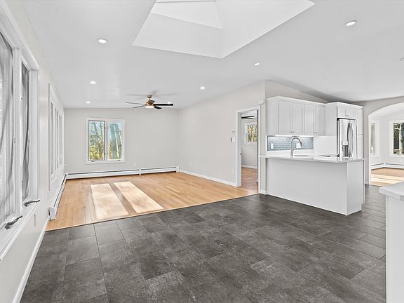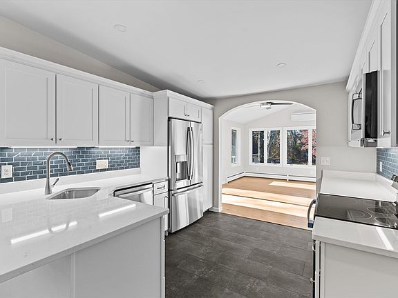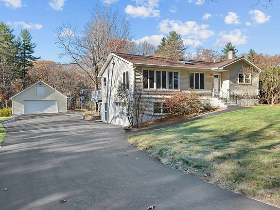 New to the Hudson market is this Super Clean Open Concept Ranch! Freshly renovated with new kitchen including, cabinets, quartz counter tops, and stainless appliances. All 3 bathrooms are brand new. The home is sundrenched with gleaming hardwood and LVL flooring throughout. Step into the sunroom or out on to the deck that looks out on the near 1 acre lot that is supported by a new mini spit for all seasons. Endless options can be had with the bonus room, it's in the walkout basement with a 3/4 bath for convenience. Park in the 1 car under or take advantage of the 28 x 40 detached garage/work shop, perfect for someone that needs an oversized space! There's an upper walk up storage room in the front of the garage with a separate work shop in the rear, there's also a lower level garage area below. Come see this amazing home, conveniently located to most anything you'll need.