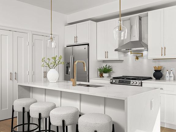 Introducing an exceptional 2 bedroom, 2 bath residence, where contemporary design meets elevated East Boston living. This sophisticated home features soaring ceilings, an abundance of natural light, and elegant white oak flooring throughout. The open-concept layout includes a sleek, modern kitchen with quartz countertops, custom cabinetry, and a spacious living area centered around a striking fireplace. Step outside to huge private deck, perfect for entertaining, or take the beautifully designed staircase up to the private roof deck, offering panoramic views of East Boston and the Boston skyline. The serene primary suite boasts a tastefully appointed en-suite bath and ample closet space, providing a true retreat. This is your opportunity to own in East Boston’s most exciting new development. Located in a professionally managed building, it’s just minutes from the Blue Line, waterfront parks, and the neighborhood’s most acclaimed dining. A truly unique and special living experience.