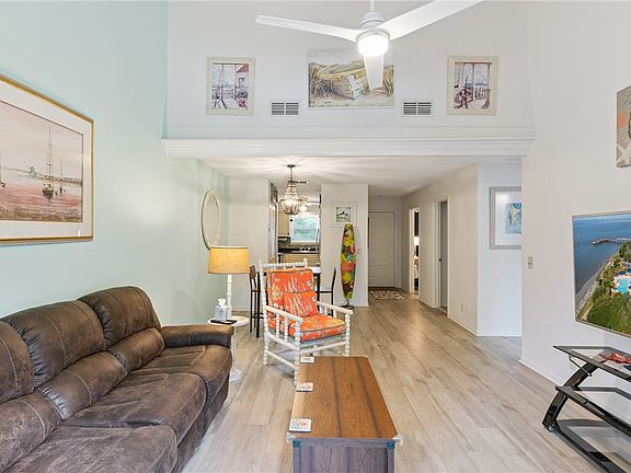 This beautifully updated upstairs condo offers modern comfort with a coastal vibe. Recent upgrades include new LVP flooring, a new washer, new AC system with ductwork, new windows and sliding doors, new stove, and a new hot water heater, remodeled bathrooms. The kitchen features stainless appliances and beautiful granite countertops, while the spacious living area opens to a large outdoor deck—perfect for relaxing or entertaining.