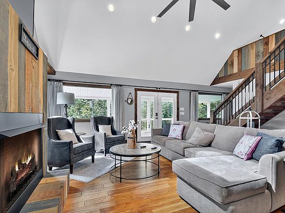 ^THE GREAT ESCAPE^ This charming modern farmhouse cottage has sizzling style whether you're looking for that perfect home or home away from home. 2BR's, 1BA featuring a total of almost 1,700 sq. ft. of total living space. Open floor plan designed for entertaining – enjoy cathedral ceilings throughout, kitchen w/ Thomasville custom cabinets w/ granite countertops, stainless steel appliances, farmhouse style sink & custom wood accents & large bar offers seating & additional prep space. Living Rm features large fixed glass windows bringing lots of natural light w/ custom wood faced gas log fireplace & hardwood floors adding to the overall coziness to this space. Large covered porch spans the entire length of home for 2 levels offering tons of outdoor living space featuring outdoor seating, dining & hot tub. All of this to enjoy this breathtaking views of mountains in the distance with the rolling green valleys below – this view is amazing overlooking Big Frog Mountain – nestled on 1.40 beautiful acres! Finished terrace level offers lots of opportunities – Features a large media/recreation room great for entertaining + built in bunkroom – this space could be petitioned off. Bathroom offers modern upgraded features including white subway tile shower w/ custom vanity w/ granite rock sink. This designer staged home can be purchased turn key full furnished – prime short term rental (STR) potential. Prime location close to it all shopping, dining, medical & all the local attractions – conveniently located near both Blue Ridge & McCaysville w/ no steep roads & mostly all paved road access. Priced to sell – schedule a viewing today!