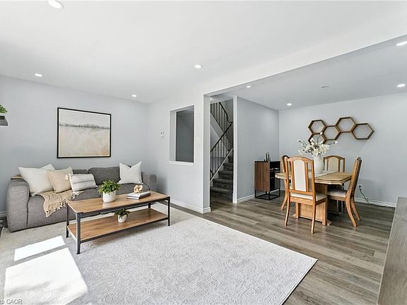 Bright, open, and spacious move in ready end unit townhome! This is a rare find and amazing value in this market, with no offer delays, see it before its too late! Freshly painted, updated flooring through. Its an amazing layout, with a spacious foyer, convenient bonus utility room, plenty of room for storage, the living room with brick wall feature and large window, open to the dining area, is truly one of the best parts fo the house! Functional kitchen with 2 piece bathroom on this level and yard access to this amazing private back yard area, perfect for the BBQ and enjoying nature. Large primary bedroom suite with 4 piece bathroom around the corner, upstairs an additional 2 nice bedrooms, could be perfect for the kids or as a home office! The driveway and laneway is being repaved very soon. Updated electrical panel. Totally move in ready still with room to make it your own! Hard to beat this value! Book a showing ASAP. **SEE VIDEO FOR FULL TOUR!**