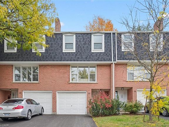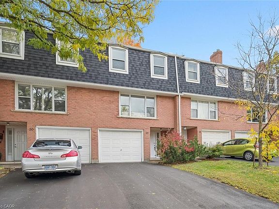 Welcome to unit #29 at 100 Bluevale St N in the convenient Bridgeport neighbourhood in Waterloo! This updated townhouse backs onto Green-space wtih thoughtful upgrades throughout. Walk into the light and welcoming foyer with access to the garage. Fresh paint, upgraded lighting, and updated flooring throughout. A bright and airy living room, with an oversized window floods the space with natural light. This design beautifully connects the living and dining areas, providing a flexible space that allows for various uses of space. The kitchen comes equipped with stainless steel appliances, white cabinetry with upgraded hardware and a picture window looking out onto your private yard. There is a 2 piece bath on this level in addition to yard access for ease of use. A large primary bedroom, complete with double closets offer ample storage. Off of the primary is a newly updated and stylish bathroom. Two additional bedrooms upstairs provide room to grow. Take comfort knowing the roof has been redone recently (2018) as well as a brand new driveway (2025) and the eaves and downspouts (2024). Conveniently located close to schools, shops, restaurants, the highway, the Zehrs and Bridgeport plazas, parks, 2 Universities, Conestoga College, and various transit options, this townhouse is an ideal match for those seeking convenience, style, and easy living.