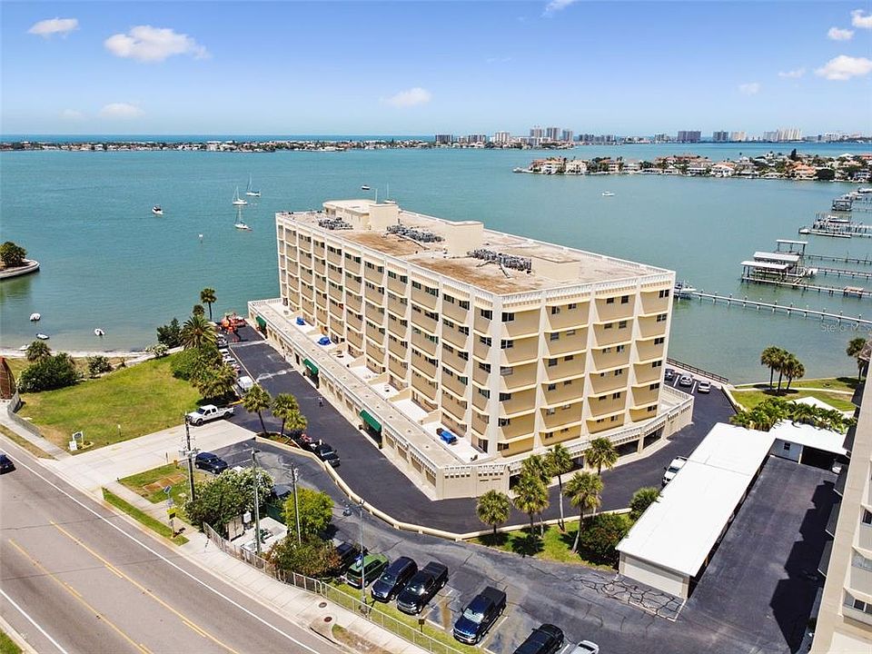 Indulge in the luxurious waterfront lifestyle that you’ve always coveted—without breaking the bank! Set in the heart of Belleair Bluffs, this exquisitely renovated 1-bedroom condo (plus a den with an optional Murphy bed) boasts an unparalleled vantage point from the 4th floor of the coveted Harbour Club C building. From the moment you step inside, you’ll be captivated by sweeping views of the Intracoastal Waterway and the twinkling lights of Sand Key at night through full-width windows that frame the sparkling Bay. At 1,050 sq. ft., the open floor plan has been masterfully designed to maximize living space while maintaining a seamless connection to the outdoors. The gourmet kitchen showcases sleek white cabinetry, granite countertops, stainless steel appliances, and barstool seating—perfect for entertaining. The primary suite offers a peaceful retreat with an oversized walk-in closet and a beautifully updated en-suite bathroom. A second bathroom, coastal-inspired with a custom vanity and tilework, ensures convenience for both residents and guests. A private washer and dryer further elevate the comfort and practicality of this incredible home. What makes this property truly exceptional is its exclusive Harbour Club C location—the only building in the community that is not 55+, directly on the water, and featuring garages. Owners enjoy the flexibility of rentals every other year (no VRBO allowed), and visitors can stay even when the owner is away. Harbour Club C has completed major assessments, a reserve study, and a milestone inspection, with fully funded reserves keeping HOA fees reasonable. Recent upgrades include a brand-new roof (2024), new hallway carpets (2023), building repainting, electrical transformer, security cameras, elevator refresh with A/C, and lobby updates—plus reduced insurance premiums thanks to proactive improvements. Spanning 5+ acres, the Harbour Club Community offers resort-style amenities: a heated pool, shuffleboard, BBQ grills, picnic areas, fishing dock, kayak access from the adjoining beach, and the joy of dolphin sightings and sunsets over the Bay. Just minutes from world-class Gulf beaches, boutique shopping, golf, cultural venues, and dining, this home truly delivers the best of Florida living. Whether you’re savoring the view from your living room or catching a sunset off the community pier, this is the lifestyle you’ve dreamed of—wrapped in thoughtful renovations and a fiscally well-managed community. Don’t miss this rare opportunity—schedule your showing today and start living your best waterfront life!