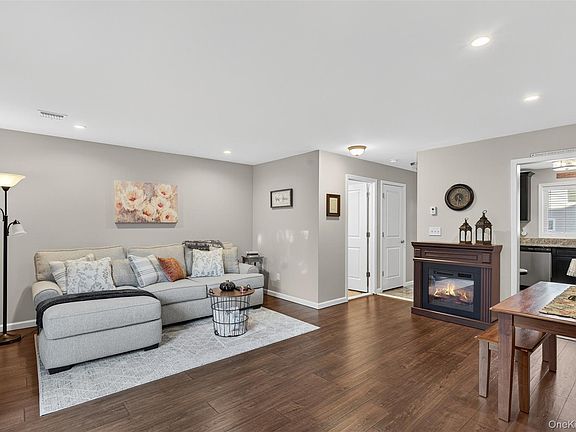 PRISTINE CONDITION WITH STANDOUT APPEAL! This charming condo, in the heart of Pine Bush, is an exceptional opportunity to move right in without lifting a finger. The luxurious oversized "marble-look" tile flooring flows from the front door into the eat-in kitchen. The kitchen offers elegance by featuring crown topped cabinets, recessed lighting, granite countertops, and stainless steel appliances. Unwind or entertain in the generous dining/living room highlighted by wide luxury vinyl plank flooring, recessed lighting, and sliding glass doors that extend the living space to a private deck. Beyond the deck is a well manicured yard bordered by mature trees for added privacy. The coat closet and powder room are conveniently located in the entrance way and hallway. Upstairs you will find a deep closet and a walk-in laundry room, both providing an abundance of storage. The versatile loft area is perfect for an extra bed, office, or relaxation. Rounding out this space is a generous bedroom with his and her closets and a full hall tiled bath with a granite countertop. In addition, the well kept basement presents possibilities for extra living space or recreation. This condo offers two parking spaces and the HOA covers snow removal, garbage pickup, and landscaping care. Access to the community clubhouse and playground are also included. At Bonivista Village you are just steps away from eateries, shops, schools and much more. Schedule your showing today and make this impressive condo your new home!