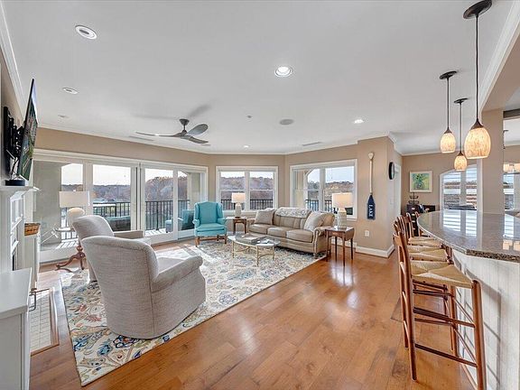 Discover lakeside luxury living with no maintenance with this large 4 bedroom, 3 bathroom top floor end unit penthouse located in one of the lakes most desirable communities, Bridgewater Pointe. This penthouse offers water views from every room inthe condo, beautiful wood flooring and a beautiful wrap around porch for ease of entertaining. The living room is filled with tons of natural light from the walls of windows and a gas FP. The gourmet kitchen offers high end appliances by Viking and Dacor and also features a built-in wine cooler, large breakfast bar and dining area. The large master suite leads to the porch as well and includes a tray ceiling, sitting area, large walkin closet and a charming gas FP. The condo is within walking distance to restaurants, shops, night life and mor