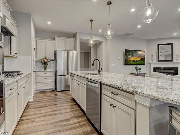 This stand alone condo is a cluster home in Barrington Estates' Clubside Manor neighborhood. Only 3 years old, this home Pulte Home is ranch style offering true one-floor living with an open floorplan between the great room with gas fireplace, spacious kitchen, dining room, and sunroom which walks out to the composite deck. Large owners suite in the rear of the home with a glamour bath and walk in closet. Total of 3 bedrooms on the main floor with laundry off the garage entry near bench and cubby storage. There is a full finished basement and a 3rd full bathroom and expansive rec room area ready for any buyer's additional living space needs. The garage is a double door with tandem parking on one side offering 3 overall garage spaces. Upgrades include new composite deck, landscaping installation, and window treatments. The home shows like new construction.