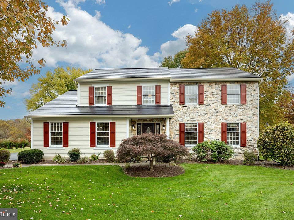 Welcome to sought-after Weavers Pond, located within the award-winning Downingtown East, STEM Academy and Uwchlan Hills Elementary Schools. This well-maintained 4-bedroom, 2.5-bath Colonial sits on a desirable cul-de-sac and features public water and sewer, manicured landscaping, and plenty of room for outdoor living. The home was recently updated with brand-new Hardie cement siding—durable for 30–50 years or more—and includes a unique Tesla Solar Roof (NEW 2021) with a 50-year guarantee. Two Tesla Powerwall batteries store energy for nighttime use, allowing the roof to generate roughly two-thirds of the home’s electricity and significantly reduce utility costs. Gas heating makes this home ultra economical. Step onto the welcoming front porch and through the entry door with sidelights, where gleaming hardwood floors greet you. The first floor has been completely redesigned for an open-concept layout with expansive living spaces and a large, updated kitchen. To the right, a spacious dining room offers the perfect setting for gatherings. Straight ahead, the bright kitchen features granite countertops, two large islands with seating, recessed lighting, glass-front cabinetry, double ovens (microwave and radiant), a built-in desk, a wine bar with refrigerator, skylights (NEW in 2020) that fill the space with natural light, and a breakfast area with top-down/bottom-up blinds. To the right, a gorgeous sunken family room addition impresses with soaring 14-foot ceilings, large arched (eyelash) windows, and tile flooring. This inviting space is ideal for both cozy movie nights and larger gatherings. An office with French doors off the kitchen offers a quiet spot for working from home or study or to practice musical instruments. The family room and office include its own HVAC zone with digital thermostat. French doors from both the family room and sunken family room and a door from the kitchen open to the beautiful stone, concrete, and paver patio—an entertainer’s dream—complete with a NEW hot tub. The yard is flat and with lovely shrubs and garden beds. On the left side of the kitchen, a second family room features NEW hardwood flooring and a stunning gas fireplace with NEW stacked stone surround. The main level also includes a powder room and access to the two-car side-entry garage, complete with Tesla charging station and upgraded epoxy flake-chip flooring. The driveway has been completely rebuilt ensuring many years of service. Heading upstairs, the attractive NEW wood staircase leads to a wide hallway and a spacious primary suite with walk-in closet and RENOVATED bath featuring granite counters, dual sinks with upgraded bowls, and a large walk-in shower with rain head and body jets. Three additional bedrooms—all with ceiling fans—share an updated hall bath with new tub, flooring, granite, and fixtures. A convenient second-floor laundry and all-NEW carpet complete the upper level. The finished lower level adds even more living space, with NEW carpet, NEW staircase with maple wood and low maintenance cable railing, a large recreation area, workshop, and abundant storage. Mechanical updates include an 80-gallon commercial-grade water heater (2020) and HVAC system (2021). Set within a popular community with sidewalks and mature trees, Weavers Pond offers a quiet, friendly atmosphere with easy access to major roads and local conveniences. Outdoor recreation, shopping, dining, and commuter options—including Marsh Creek, Struble Trail, Eagleview Town Center, and the Exton Train Station—are all just minutes away. Sellers are open to negotiating possession of many of the furnishings.