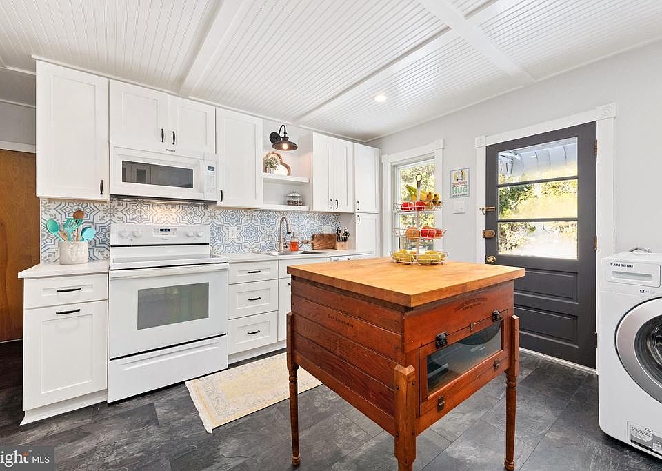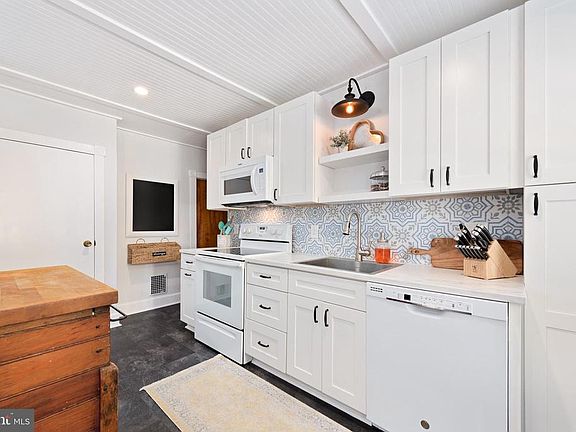 The charm of this home will capture you as soon as you walk through the front door. Upon entering you will find a large living room with a fireplace and beautiful hardwood floors that flow into the spacious dining room. The arched doorways add to the charm and then you enter the kitchen. Wow! What an update with new white cabinets, new counter tops, incredible backsplash, new bead board trimmed ceiling, oversized stainless steel kitchen sink and faucet, new flooring, new lighting. This kitchen is a dream. The main level master bedroom has ample closet space and is next to a full bathroom and second bedroom. The upper level offers two additional large bedrooms. The home is positioned on a raised lot allowing for great views. The driveway with large turn around provides plenty of parking. This home will not last!