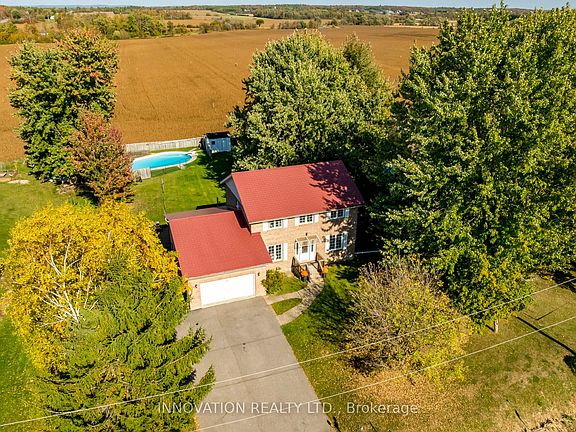 Welcome to this picturesque 2-storey detached home in the charming village of Kinburn, where country living meets modern convenience. Perfectly situated for those seeking peace and privacy while still enjoying easy access to city amenities, this home offers the best of both worlds. Set on a beautiful lot with breathtaking views of the surrounding countryside, the private fenced backyard is an entertainers dream featuring an inground pool, fire pit, tire swing, and interlock patio ideal for relaxing or hosting family and friends. Inside, you'll find a spacious and inviting layout designed for comfortable living. The large country-style eat-in kitchen is the heart of the home, complete with a sink overlooking the yard, and flows seamlessly into a sunken family room with patio doors that open to your outdoor oasis. A formal living room off the dining room provides the perfect setting for gatherings, enhanced by expansive picture windows that fill the space with natural light and showcase the stunning views. Working from home is easy with a main floor office, while the convenient main floor laundry room adds function and practicality to everyday living. Upstairs, there are three generous bedrooms, including a massive primary suite that serves as a true retreat. The finished basement provides even more living space, featuring a fourth bedroom and plenty of room for recreation, a home gym, or a play area. A perfect blend of rural tranquility and modern comfort, this Kinburn gem invites you to slow down and enjoy the beauty of country life without giving up convenience. Come experience the warmth, charm, and peaceful lifestyle this wonderful home has to offer. Total Utility cost per year $2876.
