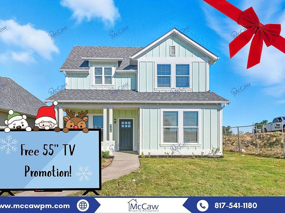 Experience luxury living combined with relaxing Granbury lifestyle. This home is a part of a special new construction lease neighborhood that gives a nod to the history of Granbury real estate. The homes have a "Period Home Design with State of the Art Finishes". The unique architecture of the neighborhood is designed by a national award-winning architect who highlights the real estate styles of The Coastal Farmhouse, Granbury Stone Traditional, 1940's Brick Ranch, and 1920's Craftsman styles. This home was designed with the "Coastal Farmhouse" flair in mind. The home boasts 3 spacious bedrooms and 2.5 well-appointed bathrooms. It is designed with high efficiency in mind, featuring Pella windows and foam insulation to ensure optimal energy savings. The kitchen is a chef's dream with an appliance package, soft close cabinets, and a premium deep sink. The rear entry garage and extra parking add an extra layer of privacy and convenience. Step outside to your private turf courtyard, a perfect oasis for relaxation. The property also includes professional landscaping, with outdoor water and maintenance covered, allowing you to enjoy the beauty without the hassle. This turnkey property offers 'lock and leave' living, ideal for those with a busy lifestyle. Nestled in a walkable neighborhood, you can enjoy leisurely strolls right from your front porch. Situated in central Granbury this home is walking distance to the popular HEB and Kroger grocery stores. Experience luxury living at its finest, the simplicity of low maintenance, and an of unapparelled sense of community.