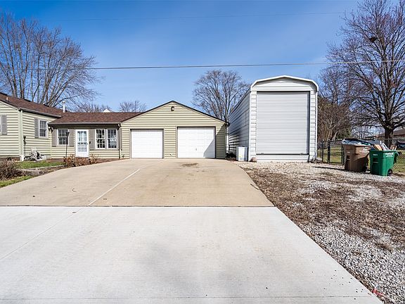 This home doesn't just impress inside; outdoors you'll find ample parking with two separate driveways, an attached two-car garage, and a large metal shed for additional storage or workshop needs. Enjoy greenery views framing the property.