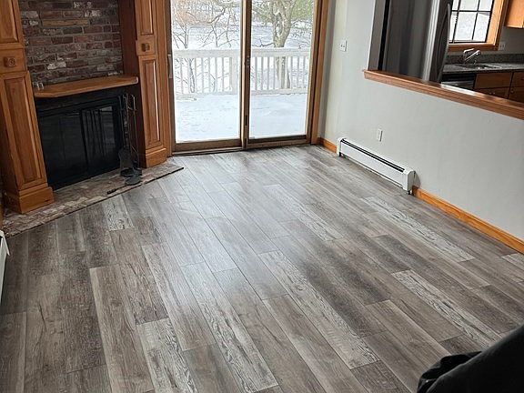 Adorable waterfront townhome!! End unit with a large deck overlooking Flanagan's Pond. Freshly painted with new vinyl flooring throughout. This home features a cozy, open concept fireplaced living room. Other updates include recessed lighting throughout and a new garage door. In unit laundry, granite countertops, stainless appliances and so much more. Close proximity to Routes 2 and 495 as well as the commuter rail and the town center. Don't miss out on this one!!