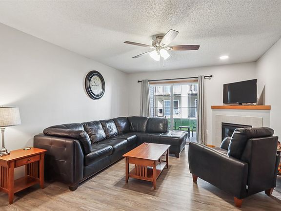 Great location close to restaurants, rec center, coffee shops, convenience store and so much more. Move-in ready! Newer flooring and paint throughout most of the condo. The living room, kitchen and dining area is open and spacious. There's a patio off the living room with a view of the courtyard perfect for outdoor relaxing. This two bedroom condo has a nice set-up with the bedrooms and bathrooms being separated by the laundry room and offers privacy. Great for company or a roommate. A detached garage for both parking and storage and there's one additional assigned parking space.