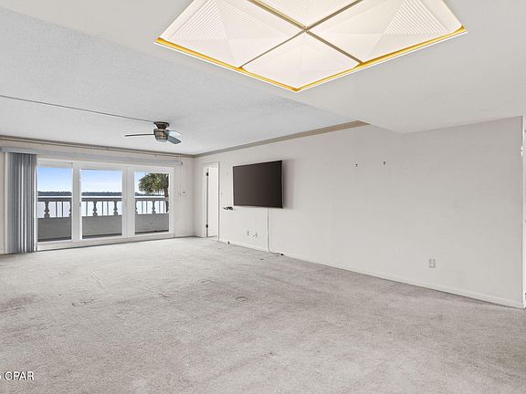 Come view this 2 bed 2 bath 1,250 sf 2nd floor waterfront condo today! Cove Condominium is a wonderful residential community right near downtown Panama City. You will enjoy the beautiful views from your 28' balcony. Inside there is a spacious living/dining area, kitchen with newer appliances (oven needs to be replaced), the front bedroom has it's own ensuite bathroom with walk in shower and the master has balcony access, ensuite bathroom updated with walk in tub, and walk in closet. There is carpet throughout the main living and bedroom areas. The A/C is newer as is a stackable washer and dryer that come with the unit. A great upgrade to this unit is fully automated hurricane shutters that can be put down with the touch of a switch. The unit comes with a separate 5' x 5' storage area down at the end of the hallway. Amenities on site include a large pool, covered pavilion, club house with kitchen and bathrooms, and a fishing/boat mooring dock with fish cleaning station. The dock has electric and water running to it. Boats may tie up to the dock for up to 48 hours. There is also a car washing station on site. The lobby is locked and secure for peace of mind. You are just a stone's throw to the downtown marina and boat ramp, wonderful restaurants, Tarpon Dock seafood market, Panama City Center for the Arts, McKenzie Park, concerts on the lawn, Hotel Indigo and all of the downtown boutiques. Make an appointment to see this one today!