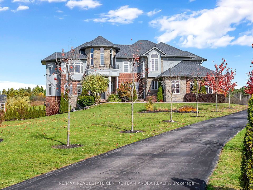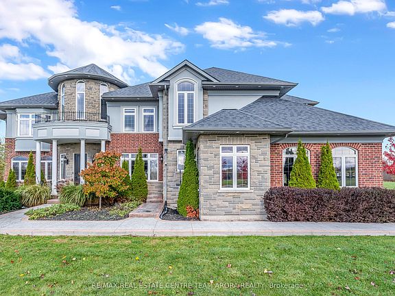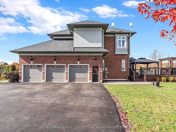 Located at the end of a quiet cul-de-sac in the exclusive Chestnut Grove Estates, this stunning custom-built home sits on over 8 acres of beautiful greenery, next to protected conservation lands and trails for unmatched privacy. With more than 6,000 sq. ft. of living space, this 5+2 bedroom, property is designed for comfort and style. The grand entryway features a 20ft ceiling and a beautiful staircase, leading to a bright and open interior with large windows and a cozy stone fireplace in the living room. The kitchen is perfect for family meals, featuring a big center island and breakfast area. The main floor also includes two home offices, a family room, a formal dining room, and a handy mudroom. Upstairs, the spacious bedrooms include a luxurious primary suite with a private sitting area and spa-like bathroom. The finished lower level offers extra bedrooms, recreation rooms, and walkout access to the backyard. Outside, enjoy a large deck, trails, and a basketball area, all surrounded by nature. This property also features a 3-car garage and energy-efficient geothermal heating, making it a perfect family retreat just an hour from Toronto.