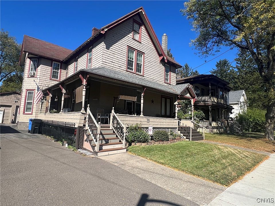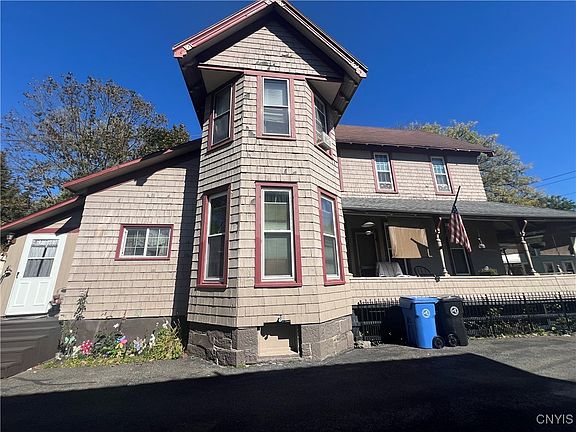 Welcome to this unique 2 story home centrally located in the City of Cortland. Close to all amenities! Shopping, groceries, restaurants, hospitals, parks and so much more. Beautiful front porch for relaxing or watching cars go by. The front porch enters into the dining room, hardwood floors, old wood door trimming, cute kitchen, large living room, one bedroom and bath down. Currently the upstairs is rented which has full amenities, 2 bedrooms and bath, and would make a great in-law suite. Full basement, currently washer and dryer in the kitchen, there is hook up in the basement also. 2 car plus detached garage, that was once a carriage house for storage of horse drawn wagons, with overhead opener and walk-in door, so much storage.This home has so much to offer, black top driveway, and a separate cute shed along side the home. Great for entertaining, play house and endless opportunities. Make your appt. today! To see for yourself!!
