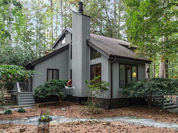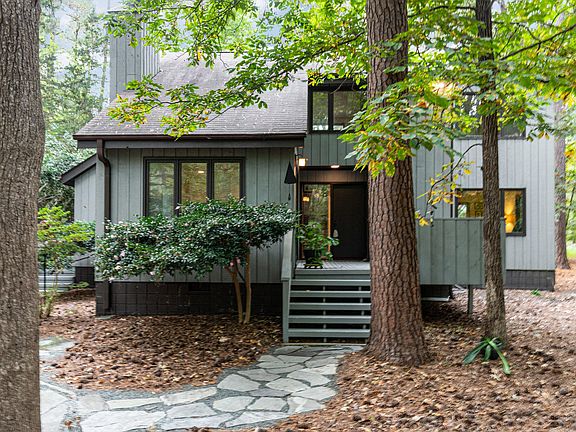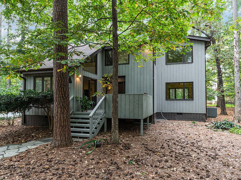 This home has been loved and well-maintained by the original owners who built it 50 years ago! This architect-designed cedar contemporary house blends into the peaceful, natural wooded 1.3-acre lot. Convenient location between Chapel Hill, Durham, and Hillsborough. The interior features hardwood floors in most rooms, large windows and glass doors, and high ceilings. The living room has glass sliding doors to a deck. The dining room also has glass sliding doors to a deck. Kitchen with custom solid wood cabinetry and breakfast nook. Main level primary bedroom and full tile bath with shower. Two bedrooms, an office, flex space, and full bath are on the second floor. Laundry room. Spacious attic storage area. Sealed crawl space. Two-car garage with spacious workshop/studio space and four 220 electric outlets. This energy-efficient home has $112/month average electric bills and average $18/month natural gas bill. The landscaping is certified by the New Hope Bird Alliance with native plants and trees that create a natural habitat for birds and other wildlife. Duke Forest walking trails are adjacent to the neighborhood. Chapel Hill School District.