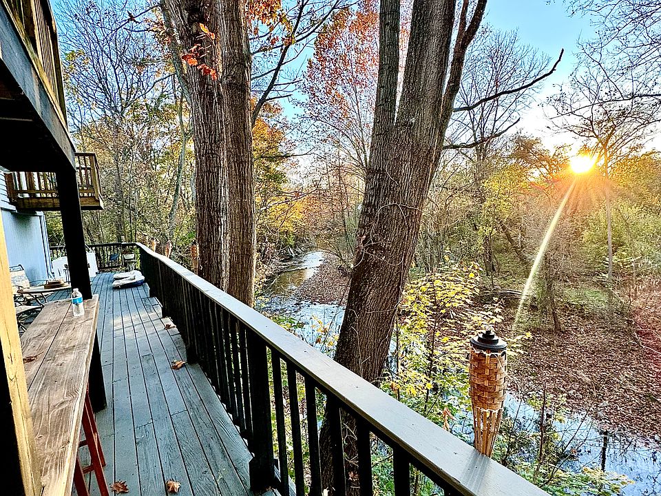The highlight of this property is the expansive 1,200+ square foot deck, which overlooks the tranquil creek and surrounding greenery perfect for relaxing, entertaining, or simply soaking in the beauty of nature.