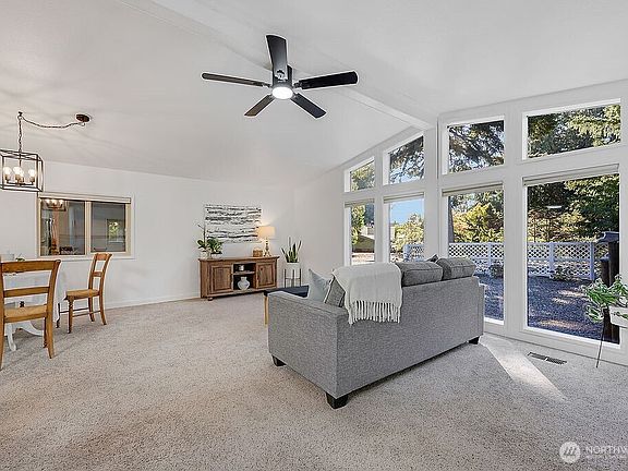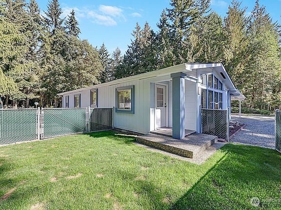 Nicely nestled between Sequim and Port Angeles, this beautifully updated home offers the perfect blend of convenience and privacy. Perched on a peaceful one-acre lot with stunning views of the Olympic Mountains, you’ll enjoy both tranquility and easy access to nearby amenities. Inside, you'll find fresh paint, new LVP flooring, and stylishly updated bathrooms all within an open, single-level floor plan that makes everyday living a breeze. This well-maintained manufactured home also features a fully fenced front yard—perfect for pets—a handy storage shed, ample parking, and a covered carport. Bonus: RV hookup is already in place. Move-in ready and full of charm!