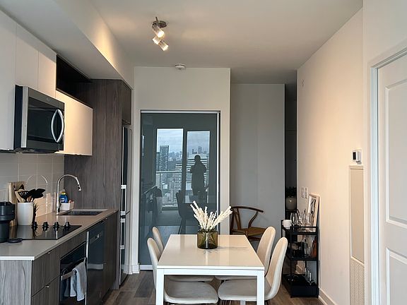 **Chic 2-Bedroom Apartment in the Heart of Downtown Toronto** Discover the perfect urban retreat in this stylish 1+1 bedroom, 1-bath apartment, ideally situated in Toronto's vibrant downtown core, right at the corner of Dundas St. E and Church St. 49th floor with North-facing views of the city. APARTMENT FEATURES: - S/S appliances - Laminate flooring - Fridge - Stove - Microwave - Oven - Dishwasher - Quartz kitchen countertop - in-unit washer/dryer - Custom blinds - Private balcony - **Couch, coffee table, TV stand (**for additional $450 one-time fee) BUILDING AMENITIES: - Fitness centre - Elevator - Yoga room - Sauna - Steam room - Rooftop 365 degrees party room/lounge - Outdoor barbecues - 24hr security COMMUNITY FEATURES: - 4 min. walk to Yonge Dundas TTC station - 4 min. walk to Eaton Centre - 2 min. walk to Toronto Metropolitan University - 5 min. walk to Metro grocery store - 4 min. walk to the cinema **NO PETS** **LANDLORD NOT ON-SITE** Internet included. Hydro & water NOT included. No pets.