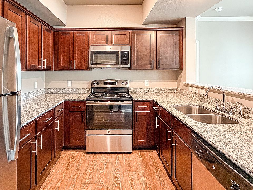 - Exterior features: 9' Ceilings, Barbecue, Carpeting in Bedrooms, Curated Social Community Events, Durable Wood-Style Flooring, Granite Countertops, On-Site Maintenance, On-Site Management, Pet Park, Private Carports, Short Term Lease, Spacious Closets, Stainless Appliances