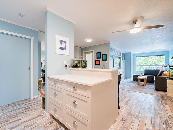 Cute, cozy and convenient 1-bedroom condo 2 minutes away from the waterfront walkway and within walking distance to Maffeo Sutton Park and downtown. The unit has been extensively updated throughout. The kitchen features four stainless steel appliances, island with eating bar, stylish backsplash, and farmhouse sink. The spacious living room has a wall of built-in cabinets and access to a covered deck that even has a view of the ocean. There is a spacious bedroom, four-piece bathroom with stacking washer and dryer. Pets and rentals are allowed with some restrictions. All data and measurements are approximate and must be verified if important.
