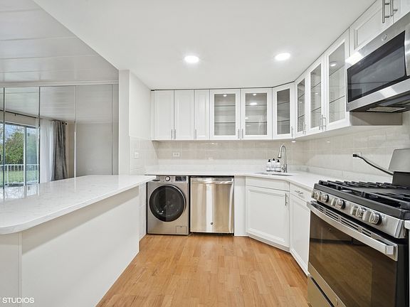 Beautiful remodeled first floor 1bd/1bath condo. 2024 newer kitchen cabinets and SS appliances, quartz countertops, freshly painted, hardwood floors. Fully remodeled bathroom. Central AC/Heater. Spacious bright living room with private patio facing the beautiful views of the park and pond. Lots of parking. Great location, walking distance to the shopping centers, grocery stores, restaurants and Metra station. Low HOA. Move-In ready!
