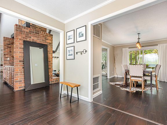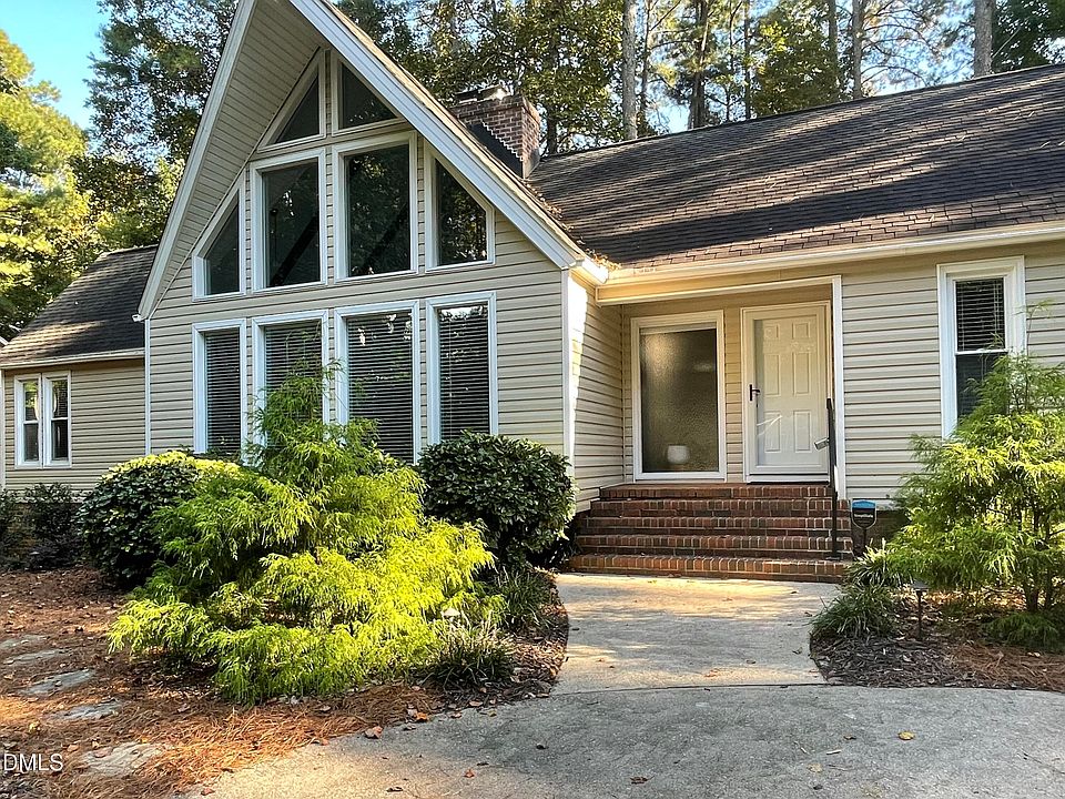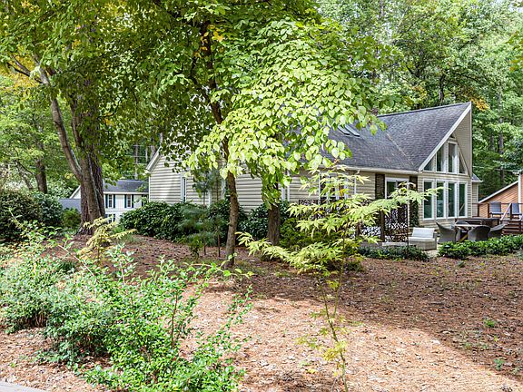A hidden gem with a story to tell - industrial charm meets classic style in one of Wake Forest's most endearing corners. This A-frame-style home features ~2,180 sf, with three bedrooms conveniently arranged on the main floor, and a bonus space with closet/storage above—the skylights make it perfect for a creative studio, guest retreat, or cozy office. Vaulted ceilings, large windows, renovated bathrooms, handscraped distressed engineered bamboo throughout the main floor, 2 story high fireplace featuring a freestanding wood burning stove and natural wood elements throughout give it warmth and personality. Outdoors you'll find a lot of room to roam—level yard, mature trees for shade and privacy, plus space to entertain on the deck and flagstone patio. With only $35/year voluntary HOA fees and no HOA restrictions you can truly embrace your home your way. Located just 5 minutes from Wake Forest's downtown, shopping, dining, parks, and top schools, this house gives you character, convenience, and comfort all in one. The encapsulated crawl space, whole house dehumidifier, new plumbing, remodeled bathrooms and kitchen, new deck, 2023 Trane HVAC, and every detail in this home is for peace of mind. Don't miss it! Inquiries were made with the City of Wake Forest and a detached garage can be built in the back of the home - if interested please confirm with them.