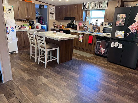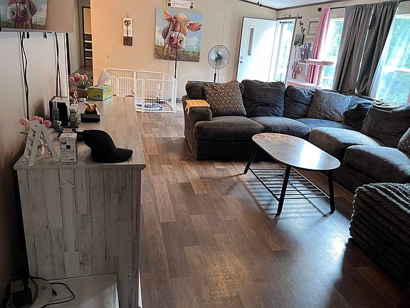 This beautiful, manufactured home boosts 5 bedrooms and 3 full baths. The residence features large living room. Kitchen with all appliances including a freezer, also a large dining room connecting to kitchen. Utility room connects to kitchen area. Primary bedroom offers lots of room and the primary bathroom has an oversized tub. Property features 4 additional bedrooms on the opposite end with 2 more full baths. The property offers a substantial .69 acre of land. Large Detached garage We invite you to explore this exceptional property before it's too late.