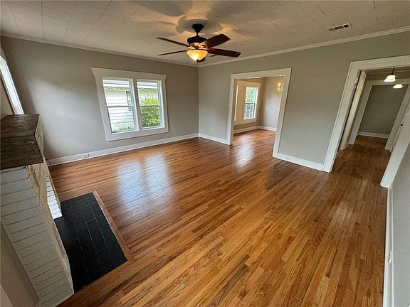 Nestled amid magnificent live oak trees, this charming cottage features three bedrooms and two full baths and sits on a corner lot in Bay Minette. The property includes a guest house or in-law suite with two bedrooms and one full bath. In the main house, you will find beautiful hardwood floors throughout the living areas and luxury vinyl flooring in the kitchen, bathrooms, and laundry room. A built-in glass-front cabinet welcomes visitors in the foyer. The open living room boasts an ornamental fireplace and large windows. There is a separate dining room adorned with an exquisite chandelier. The spacious kitchen comes equipped with white cabinetry, butcher block countertops, custom-built spice / herb cabinet, and glass-front cabinets. The main bedroom is brightened by large windows, bathing the rich hardwood floors in sunlight. Two additional well-sized bedrooms and a modern hall bath provide ample space for family or guests. An oversized laundry room leads out to a quiet, cozy courtyard style patio area that connects to the guest house/in-law suite. The guest house offers a front bedroom or living area that could also serve as a home office, along with a full bathroom featuring a stand-up shower. Vinyl flooring throughout. The welcoming kitchen includes hook-ups for a washer and dryer.