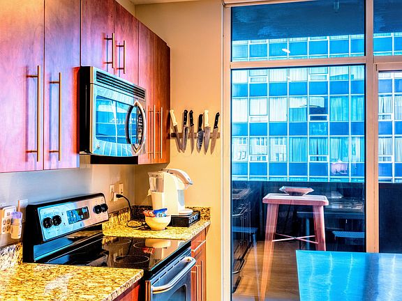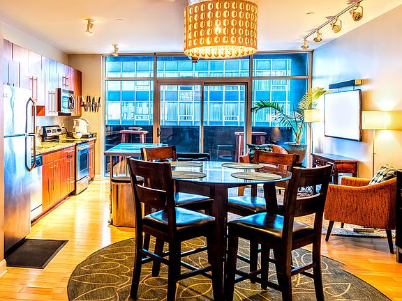 Beautiful one-bedroom corner unit with open floor plan, sunny bedroom on backside of building, large closet, fully updated bathroom equipped with large walk-in shower. South-facing balcony and option for selling fully furnished. Fabulous for owner-occupied use or for a mid-term rental (30 day minimum). This unit has been marketed andoperated as a mid-term rental for the past several years with repeat clients; traveling nurses, etc. Open floor plan with modern kitchen and SS appliances, wall mount for tv, plenty of light from floor-to-ceiling glass windows and door to balcony. Roof top party room space and patio are available for residents to have showstopper views of Columbus while entertaining. All this with a fabulous central location with the soon-to-be started Capital Line project which will bridge much of the city together with an urban pathway, outdoor seating, greenery, walkways and performance space. (The path will loop two miles along Gay, Rich and 4th streets before crossing the Scioto River and closing the loop on Belle Street in Franklinton.) One garage parking space included. In-unit washer/dryer. HOA includes water, sewer, parking spot, trash, WiFi, and wired internet. Secure locked entrance building. Near transportation, restaurants, music venues and more.