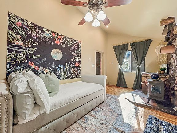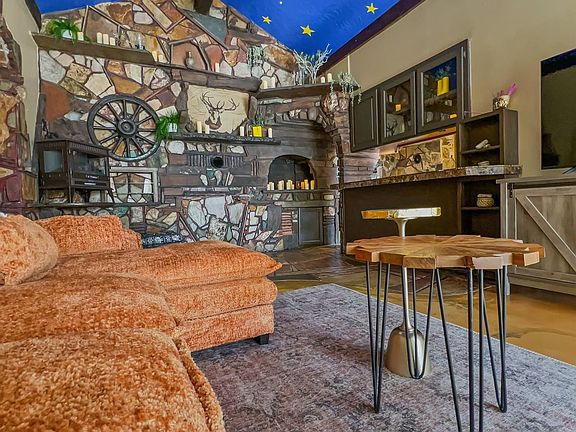 The Enchanted Cottage in Payson is more than just a vacation home; it is an experience your family will remember. This 3.5-bedroom, three-bathroom home offers ample space for the whole family to spread out or come together. Featuring a unique bunny room in an offset room of the primary bedroom, a kiddo can be close by yet tucked away in their own special sleeping area. A sizeable primary bedroom upstairs with an en-suite bath, two bedrooms downstairs, and lots of details to explore ensure comfort and delight throughout your stay. The details and fun begin the moment you walk in the front door, with pictures unable to fully capture the fun and nuances in this space. The living room offers comfortable seating for all, a large screen TV that is streaming capable, and dining seating with large windows. Don't forget to look up for the highlight of this space. Wind your way through the secret door to find the kitchen with all new appliances and a drip coffee maker for your use. Commune with nature in the sunroom and enjoy the warmth of the day, regardless of how cold it may be outside. Electric fireplaces, plenty of parking, a dedicated backyard, and all of your basic creature comforts make this home one of a kind and an experience you cannot miss. All bathrooms include complimentary shampoo, conditioner, and body wash. You will also find hair dryers, fresh towels, and laundry access. A starter set of toilet paper, paper towels, dish soap, dishwasher soap, coffee, and trash bags are provided. Every bed will have a fresh set of linens and a comforter or quilt. One set of towels per person is provided. No parking is allowed on the street. Three vehicles can fit in the circle driveway in front of the home. The Enchanted Cottage is ideally situated to enjoy all of Payson's highlights. The Tonto National Forest, the Tonto Natural Bridge State Park, numerous hiking trails, farmer's markets, parks, and natural waterways are nearby. While the home is conveniently located for sightseeing, you will feel tucked away from the hustle and bustle of the outside world while exploring the Enchanted Cottage. Local customer service is available from 8 am to 10 pm.