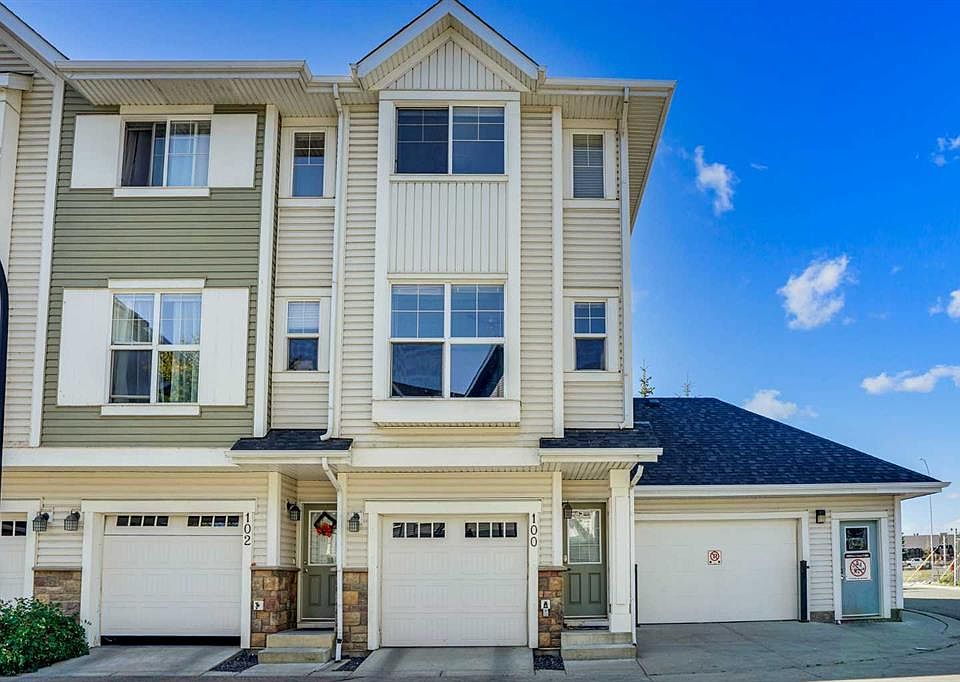 Welcome to your new home! This bright and well kept 3 bedroom, 2.5 bathroom END UNIT 3-storey townhome comes with almost 1,300 sq. ft. of FRESHLY PAINTED living space. The OPEN CONCEPT living, dining and kitchen is on the second floor. Being an end-unit, there are 2 LARGE WINDOWS on the east and north sides of the living room bringing in PLENTY OF NATURAL LIGHT and AWESOME VIEWS OF THE POND just beside the townhouse complex. There is new LAMINATE FLOORING on living and dining areas. The CEILING FAN and central AIR-CONDITIONER is included, providing comfort during the warm summer days. The spacious kitchen boasts of ESPRESSO CABINETS, STAINLESS-STEEL HOODFAN, BLACK APPLIANCES, TONS OF COUNTER SPACE & A PENINSULA ISLAND, perfect as a breakfast bar. A 2-piece bathroom and a WEST-FACING BALCONY WITH A GAS LINE TO THE BARBECUE completes the second floor. Upstairs you'll find the convenient STACKED WASHER & DRYER, the good-sized master bedroom with a WALK-IN CLOSET AND 3-PIECE ENSUITE, a 4-PIECE MAIN BATH and the other 2 bedrooms on the west side. The ATTACHED DOUBLE TANDEM GARAGE comes with a backdoor. Half of the garage used to be a 4th bedroom and can easily be converted back with proper permits and condo board approval, of course. Tons of visitor parking infront and on the north side of this home. This lovely home has easy access to the South Trail Shopping complex, just go through the pedestrian access at the corner of the complex and cross the 52 Street SE! Among the stores within walking distance are Rona, Home Depot, Walmart, Marks, Superstore, Canadian Tire plus a plethora of restaurants. The great community of New Brighton has tons of parks, playgrounds, schools, ponds and a community clubhouse with a summer waterpark and hosting different events including the annual Stampede breakfast for all residents and neighbouring communities. This lovely home is incredibly priced and comes with great value. Don't miss out!