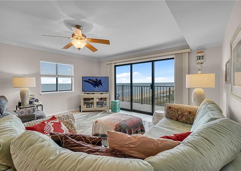 Live every Day like a Vacation! FINEST Upgraded Unit s in t. Stunning Sunrises/Sunsets, passing Sailboats, huge Ships, playful Dolphins & soaring Waterfowl are yours to enjoy from this beautiful Bayfront Condo. Million Dollar views in the Heart of Ocean View on the Chesapeake Bay! Large Private Balcony directly overlooking the Beach & Bay. A welcoming community with great amenities: exercise room, tennis courts, fenced private pool, social events room, library, private beach access, extra storage, reserved parking, 24-hour management/security, & much more. Your new Beach Home – Huge master bedroom with a nicely renovated master bath w/ walk-in closet, newer HVAC, & bright sunny rooms- each with a wonderful Bay view- Near the Bay, you’ll feel the gentle breezes, smell the salty air, and hear the gentle waves. Check out the photos and aerial video! 5th Floor End Unit!