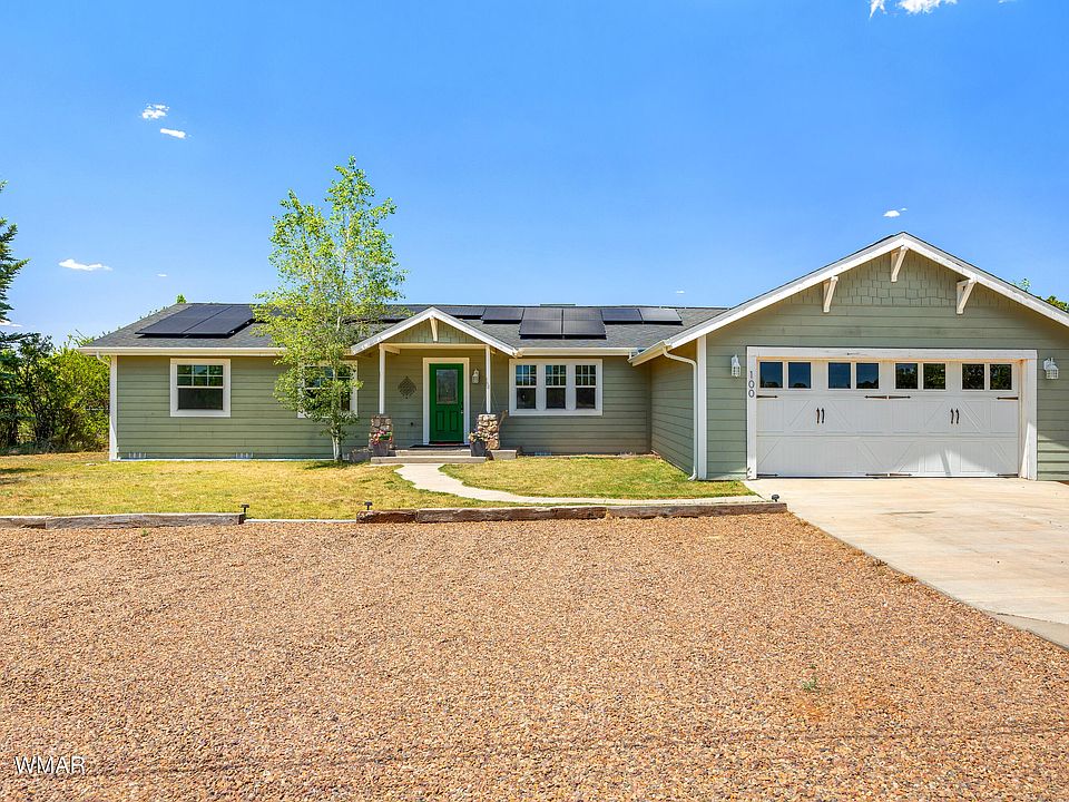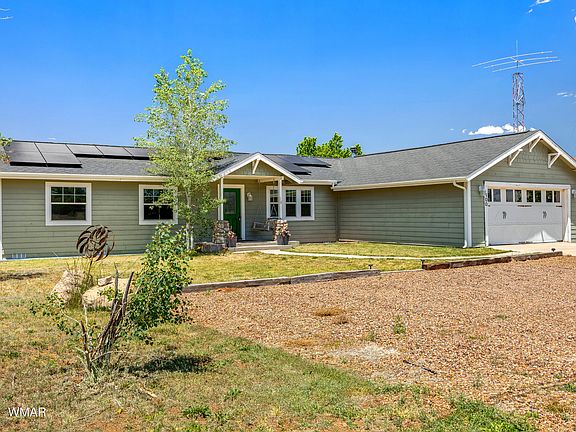 Welcome to your dream home! Nestled on a spacious 1/2-acre lot in the middle of Show Low, this inviting single-level residence combines modern convenience with ample outdoor space. Enjoy the perfect blend of comfort, style, and sustainability in this beautifully maintained property. The large back deck is perfect for entertaining, relaxing, or enjoying your morning coffee while overlooking the expansive backyard. These 3 beds 2 bath home has spacious rooms for family and guests. The family room is open and welcoming space ideal for gatherings, movie nights, or cozy evenings with the wood burning stove. Enjoy reduced energy bills and a smaller carbon footprint with the installed solar panels. Centrally located, providing easy access to local amenities, schools, parks, and shopping. This home offers a unique combination of space, comfort, and eco-friendly features, making it a perfect choice for families, retirees, or anyone looking for a serene retreat in the heart of the city. Don't miss out on the opportunity to make this wonderful property your own!