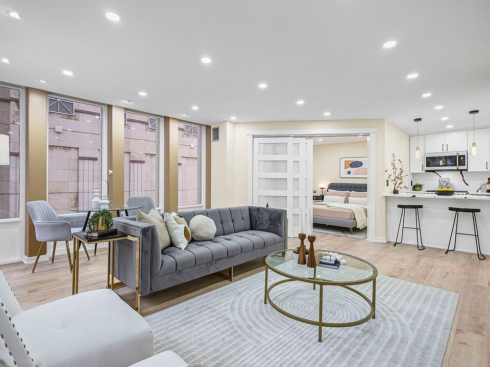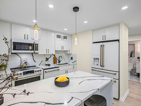 Brand new renovation-move in ready and stunning throughout! Fully renovated from top to bottom, this 2-bedroom home offers modern design, practical and high-end updates, and a prime Gold Coast location. Just steps from Oak Street Beach, the lakefront trail, Oak Street's high-end boutiques, Rush Street dining, nightlife, and cafes, and within easy walking distance of Michigan Avenue, the Magnificent Mile, museums, and everyday conveniences, the home is bright and inviting with desirable east and south exposures providing a partial lake view. The unit features new recessed and accent lighting, all-new flooring, upgraded plumbing, brand-new doors and baseboards, and a newly installed in-unit high-efficiency washer and dryer. The brand-new kitchen showcases custom white cabinetry, marble countertops, a matching backsplash, a marble island/peninsula, and high-end Cafe alliance combining modern convenience and functionality. The spa-like brand-new bathroom includes white cabinetry, a marble countertop, updated fixtures, and an in-wall recessed mirror with hidden storage, offering a clean, contemporary, and highly practical design. The living area includes a designer-framed electric fireplace as a focal point, while the second bedroom's three-panel sliding door allows flexible use as a guest room, office, or expanded living space. Parking is available in the attached building garage, and additional storage can be requested through management. Building amenities include a rooftop pool and sundeck, fitness room, party room, 24-hour door staff, and on-site management, supported by over $2 million in financial reserves. Assessments include all utilities except electric, including air conditioning and basic cable. With its complete renovation, practical and high-end features, and walk-to-everything Gold Coast location, this residence offers a turnkey, move-in-ready home.